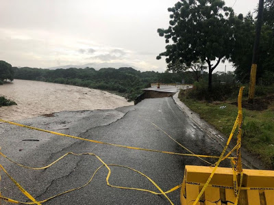 En Yaguate las aguas de la depresión tropical Beryl ha provocado que uno de sus arroyo que pase por encima del puente que da paso al municipio, Las lluvias han provocados fuentes ráfagas de vientos en Villa Altagracia.