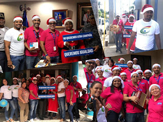 Encabezados por el director de la Unidad de Programas de Plan Internacional en Barahona, Jean Beltré y el director del Centro Cultural María Montez, Ángel González Feliz, empleados de Plan y colaboradores del Ministerio de Cultura irrumpieron en oficinas para compartir dulces y cánticos navideños con los empleados.